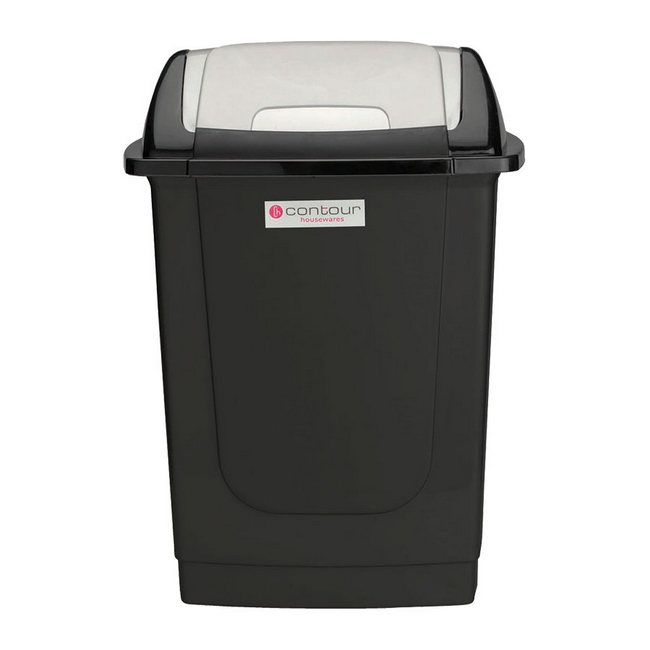 Contour 50L Rectangular Plastic Dust Bin - Square Swing Lid - Black - Pack of 5