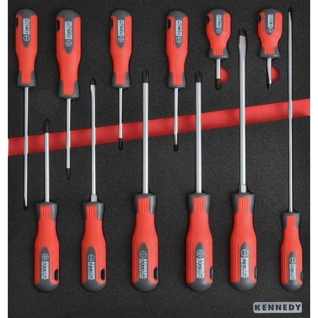 - Organise and access a comprehensive twelve piece screwdriver assortment designed for workshop and maintenance tasks