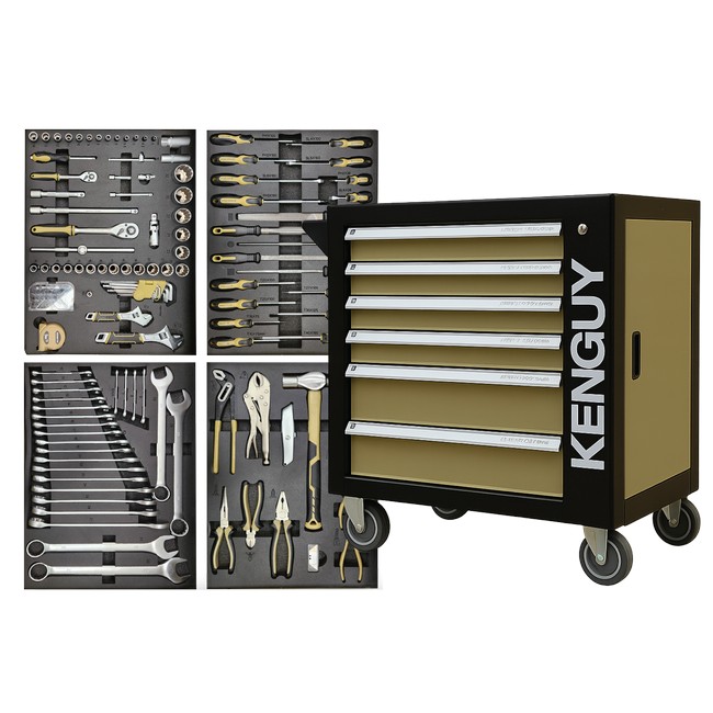 Kenguy Roller Cabinet Tool Set - 155 Pieces - Steel Roller Cabinet - 6 Drawer - Black & Blue