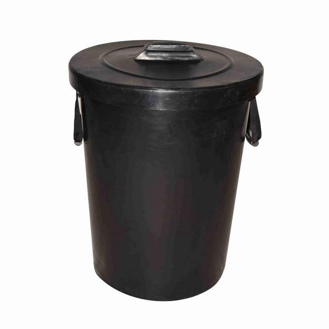Refuse Bin with Lid - Plastic - Rope Handles - 90L - Black