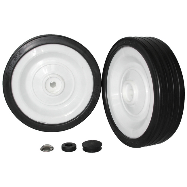 2 x 200mm rubber tyred wheels and 2 x 125mm rubber tyred wheels for manoeuvrability