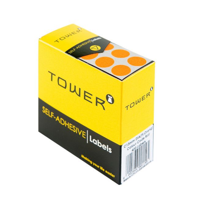 Labels - Colour Coding - Round - 13mm - Fluorescent Orange - 1 Box - C13FO